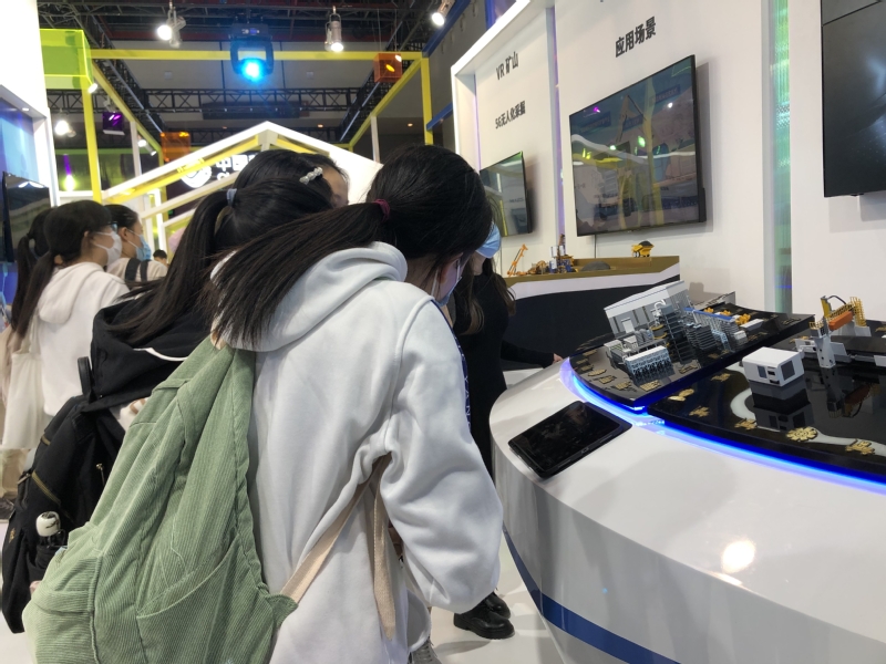 在以中国铁塔集团为代表的展位上,通过展位工作人员的讲解和展示,我们了解到5G具有强信号的特征。在实际工作中,利用5G技术,可以在恶劣环境下实现工程作业的远程精准控制,比如说地下矿物挖掘通过5G实现无人精准操控。同时,通过VR矿山的体验,也让同学们对5G无人化采掘技术等应用有了一个深刻的了解。