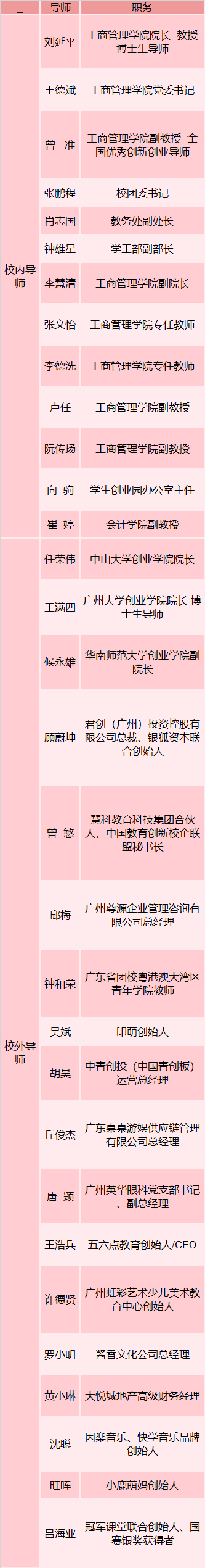 导师配置:给各个项目匹配至少一名创业老师、一名企业导师。