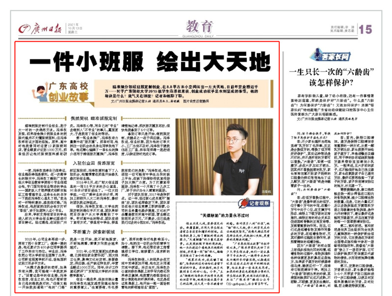 (广州日报2021年10月13日教育版头条报道,链接https://gzdaily.dayoo.com/pc/html/2021-10/13/content_880_771543.htm。广州日报手机客户端2021年10月12日报道,链接https://www.gzdaily.cn/amucsite/pad/index.html?id=1679392#/detail/1679392?site4&columnID=0)