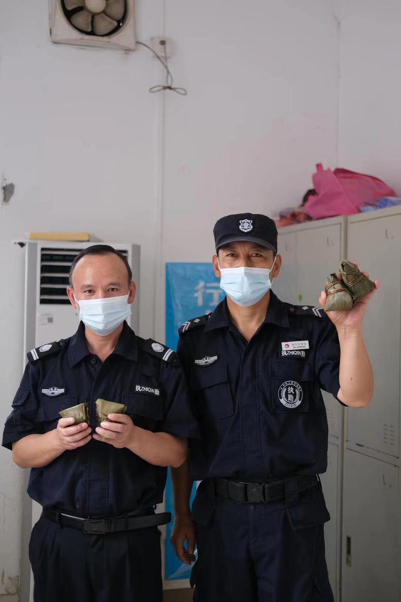 同学们积极分享自己的劳动果实,将蒸煮好的粽子分派给校园内宿管、保卫、环卫等各岗位的工作人员,送出节日祝福,感谢他们节假日仍坚守岗位、辛苦付出。