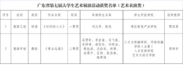 据悉,广东省大学生艺术展演活动由广东省教育厅主办,每三年一届,本届展演活动主题为“厚植家国情怀,涵养进取品格”。
