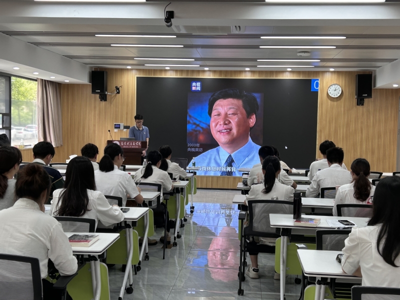 4月23日下午,在学校2023-2024年度共青团工作先进集体和个人评优会上,校团委、校学生会向各项目候选人赠送《习近平的七年知青岁月》,组织同学们集中观看了《习近平的读书故事》视频,引导同学们发挥骨干领读作用,积极走进同学当中,结合自身事迹宣讲,共同阅读体会。校团委专职团干、校学生会指导老师薛云峰与现场的同学分享了读书心得,带领同学们学习习近平总书记七年知青岁月的故事,感悟习近平总书记的人民情怀,并鼓励同学们培养爱读书、读好书、善读书的好习惯。