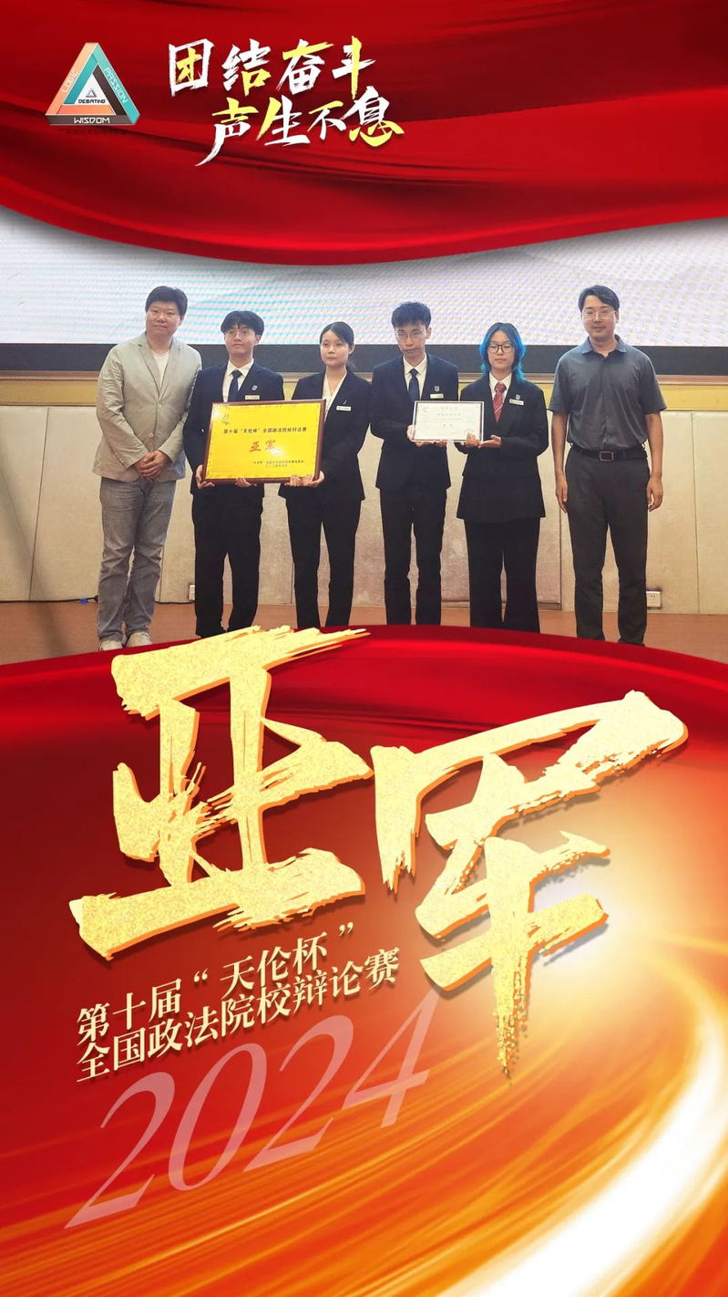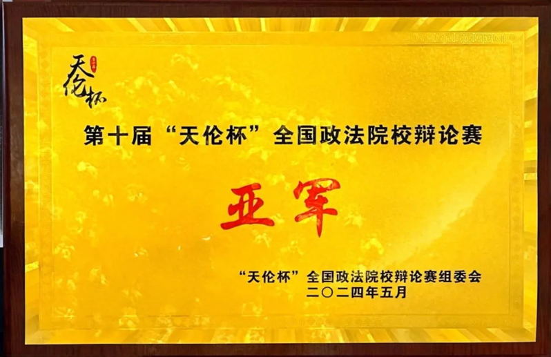 5月19日下午,第十届“天伦杯”全国政法院校辩论赛在西南政法大学落幕。我校辩论队荣获大赛亚军,为校辩论队的荣誉薄又添重重一笔。