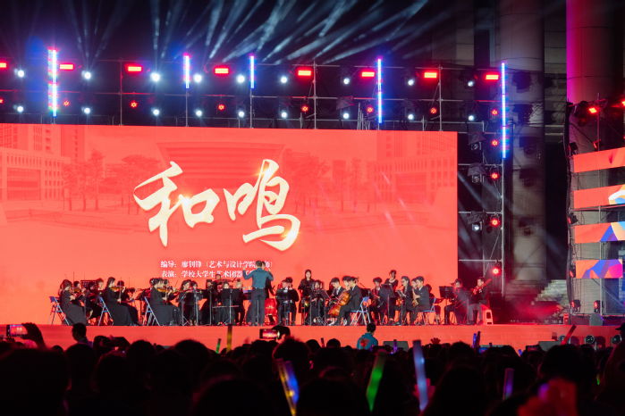 值得一提的是,17位内蒙古财经大学师生,不远千里,来到晚会现场,为观众带来充满民族风情的马头琴演奏《初升的太阳》《万马奔腾》和民族舞《骏马赞》。内蒙古财经大学与我校在教学科研、学科建设、校园文化等领域,长期保持着紧密的交流与协作。本次晚会的合作,也象征着两校在文化交流与美育共建等方面更进一步。今年,我校在学科建设迈上新的台阶。为此,我校学子与西南政法大学学子,共同组建起大学生总体国家安全观宣讲团,表演《我们每个人都是长城》的诗歌朗诵,引起现场阵阵掌声。