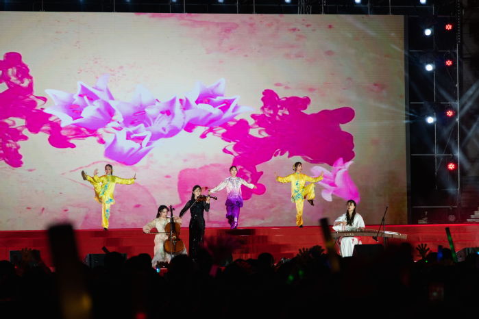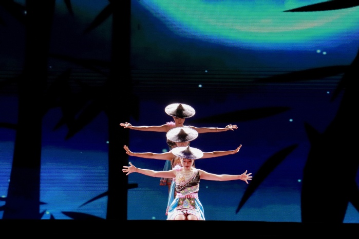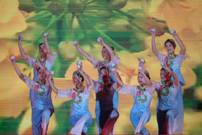 与我校结对共建“双百行动”工作的梅州兴宁市和惠州龙门县,分别为晚会带来了兴宁杯花舞《杯花声声迎客来》和龙门县的民族舞《瑶乡悦舞》的非遗文化表演。演员们将客家、瑶族等民族传统文化,带到了广财校园,促进校地文化交流与共进。