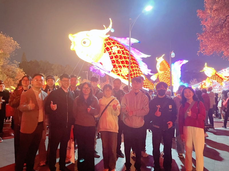 超七层楼高的巨型凤冠灯饰、长达128米的锦鲤带灯组、近500米的“花开越秀”灯组区域……同学们漫步在灯海之中,被一盏盏造型精美、寓意深刻的彩灯所吸引,感受到了传统节庆的魅力。除了欣赏璀璨夺目的彩灯,同学们还积极参与了文创市集、诗词诵读等特色活动,在互动体验中深刻领略岭南文化的博大精深。